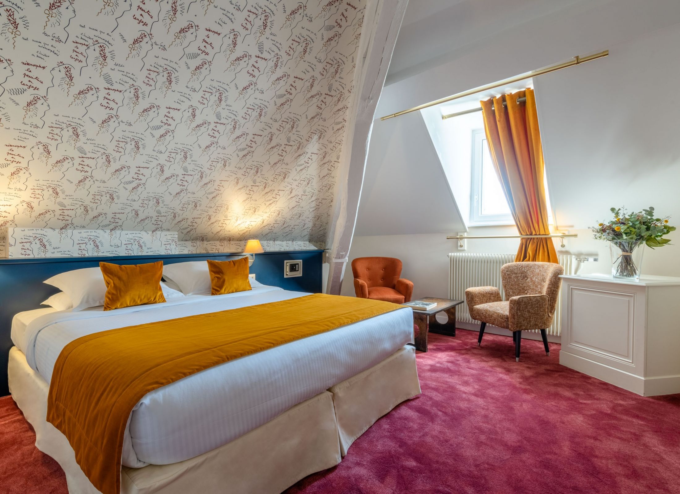 Parfaites pour accueillir votre séjour romantique ou vos étapes professionnelles, nos Chambres Supérieures sont climatisées et offrent une ambiance douce et contemporaine. Au second étage de la Maison Principale, avec vue sur nos jardins de plantes aromatiques, toutes disposent de meubles chinés, d'un espace de travail et de salles de bains avec douche ou baignoire.